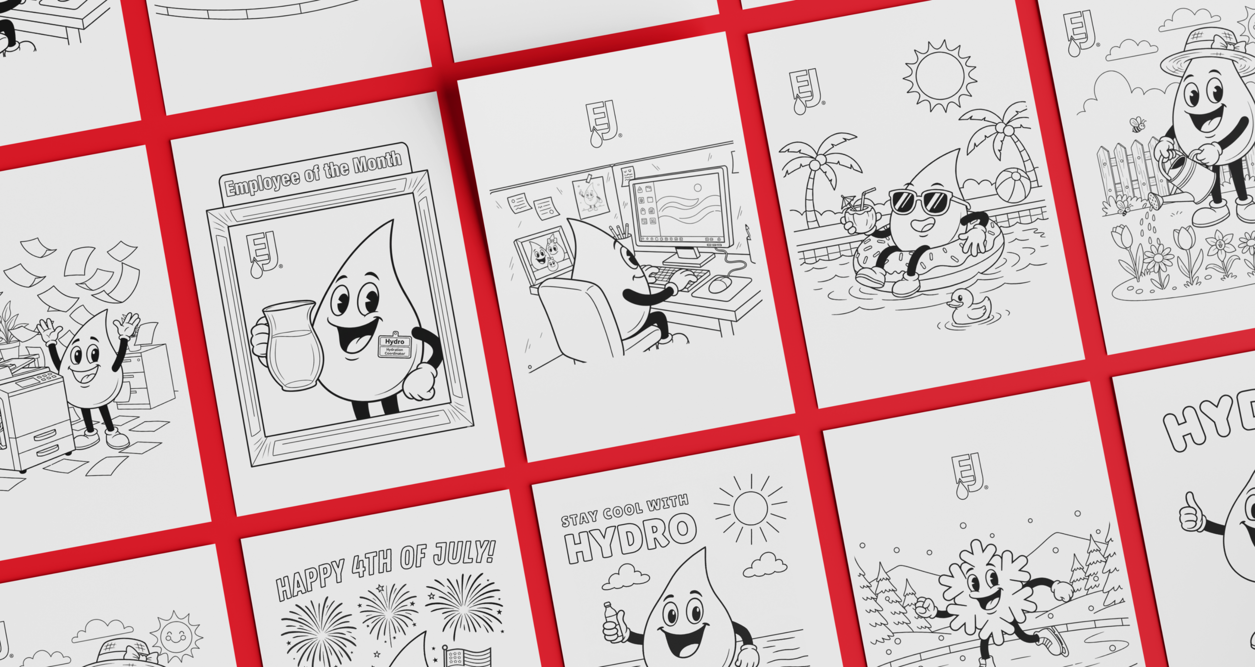 From “Hydro at Work” video skits to coloring pages, stickers, and the Hydro and Seek social campaign, every touchpoint was designed to be simple, human, and easy to engage with—whether online or in person.